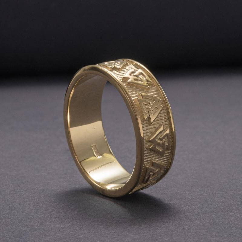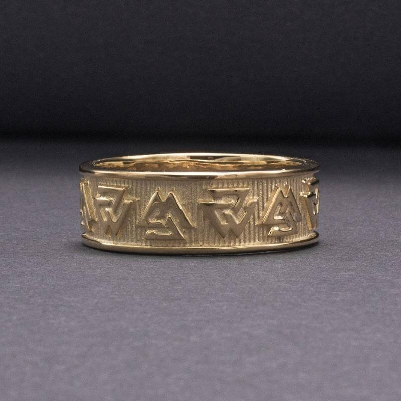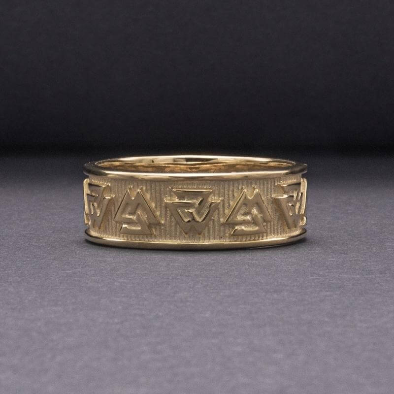 Handgefertigter Valknut Norse Band Goldring