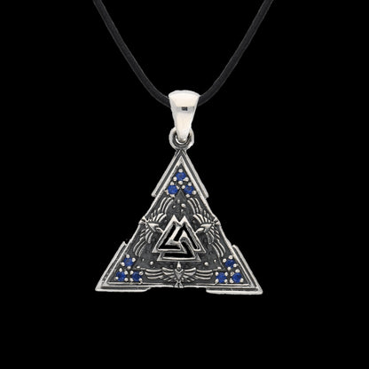 Handgefertigter Valknut-Symbol-Raben-Ornament-Silber-Sterling-Anhänger