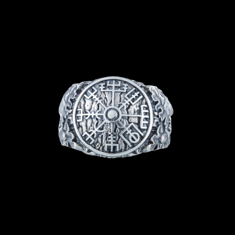 Handgefertigter Ring aus Sterlingsilber im Vegvisir-Symbol-Eichenstil