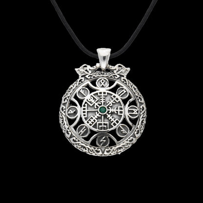 Handgefertigter Vegvisir-Symbol-Wikinger-Runen-Ornement-Silber-Sterling-Anhänger