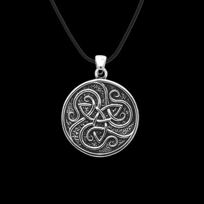 Die Rückseite des Anhängers zeigt den Triskelion, ein Symbol, das eng mit Odin verbunden ist. Seine drei Punkte repräsentieren Odin als Krieger, Weisen und Entdecker und spiegeln die facettenreichen Stärken des Allvaters wider. Der Triskelion ist auch mit Seidr-Magie verbunden, deren Meister Odin war.