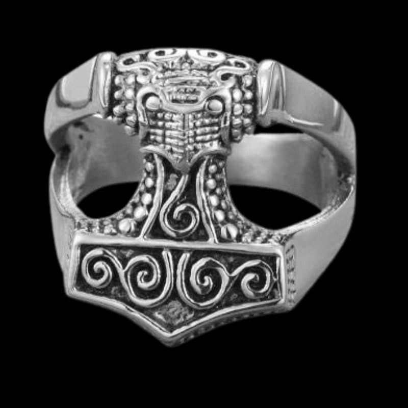 Donnergott Thor Hammer Mjölnir Futhark Odin Nordischer Biker Ring 925 Sterling Silber