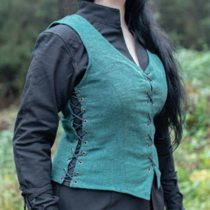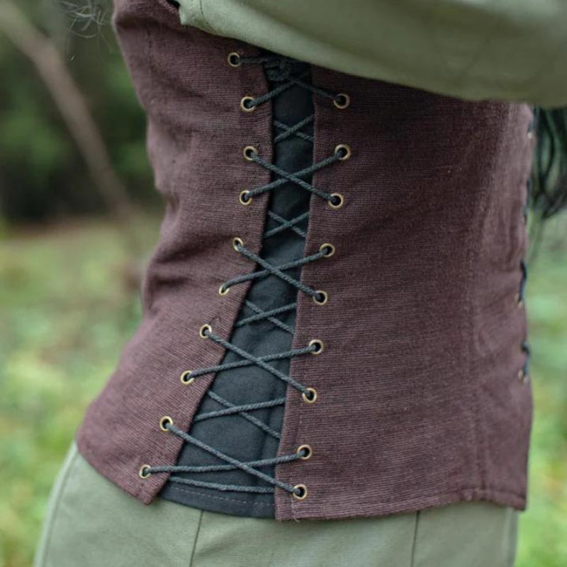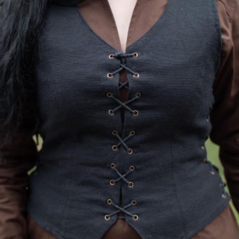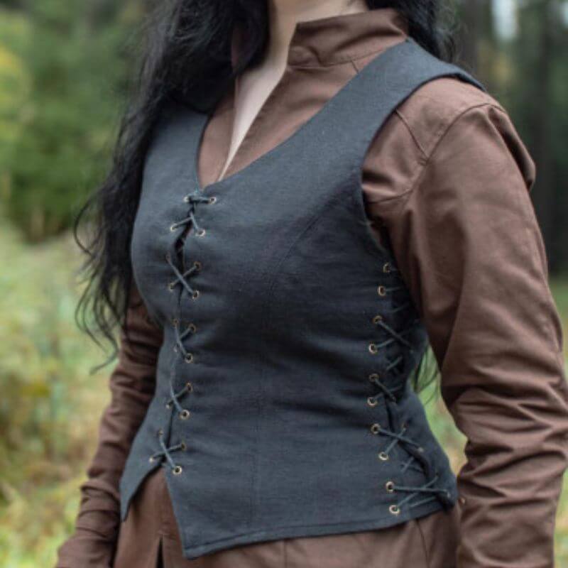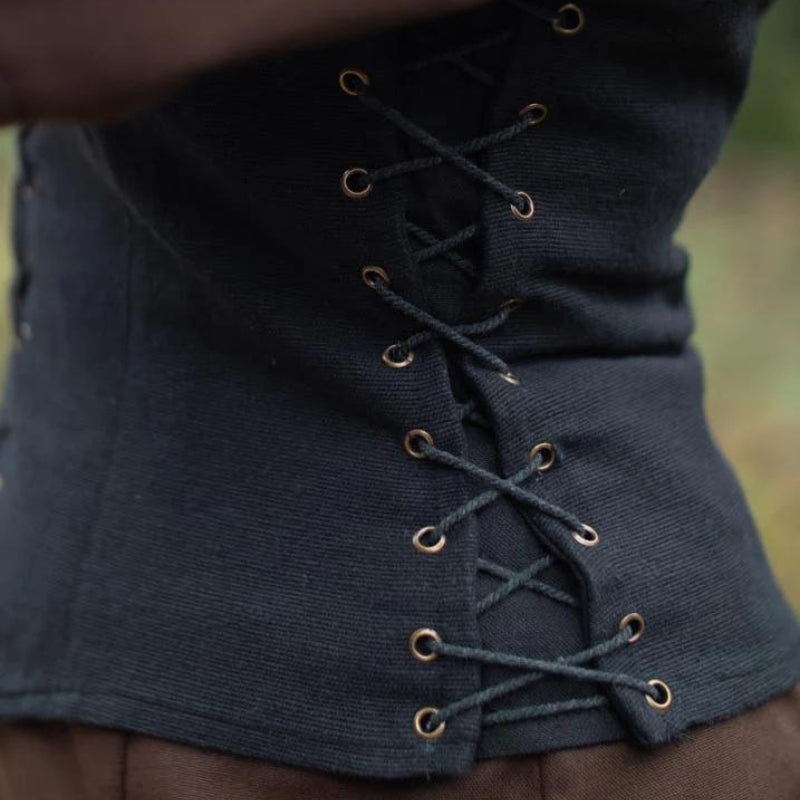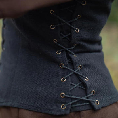 Das Marien-Mieder ist ein Muss für jede Frau, die sich in die Welt mittelalterlicher und Fantasy-Ereignisse wagt. Dieses ärmellose Oberteil aus 100 % Baumwolle vereint Funktionalität mit Eleganz und ist somit die ideale Wahl für LARP, mittelalterliche Jahrmärkte und historische Nachstellungen. Der tiefe V-Ausschnitt unterstreicht den stilvollen Reiz, während die Schnürung an den Seiten und in der Mitte für eine perfekte Passform und maximale Flexibilität sorgt.