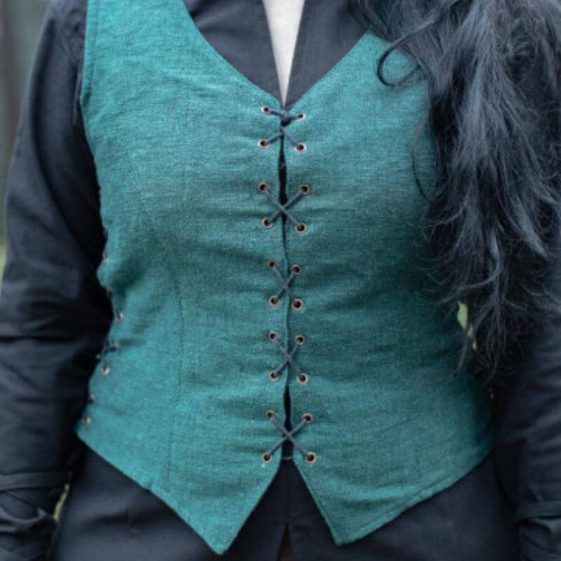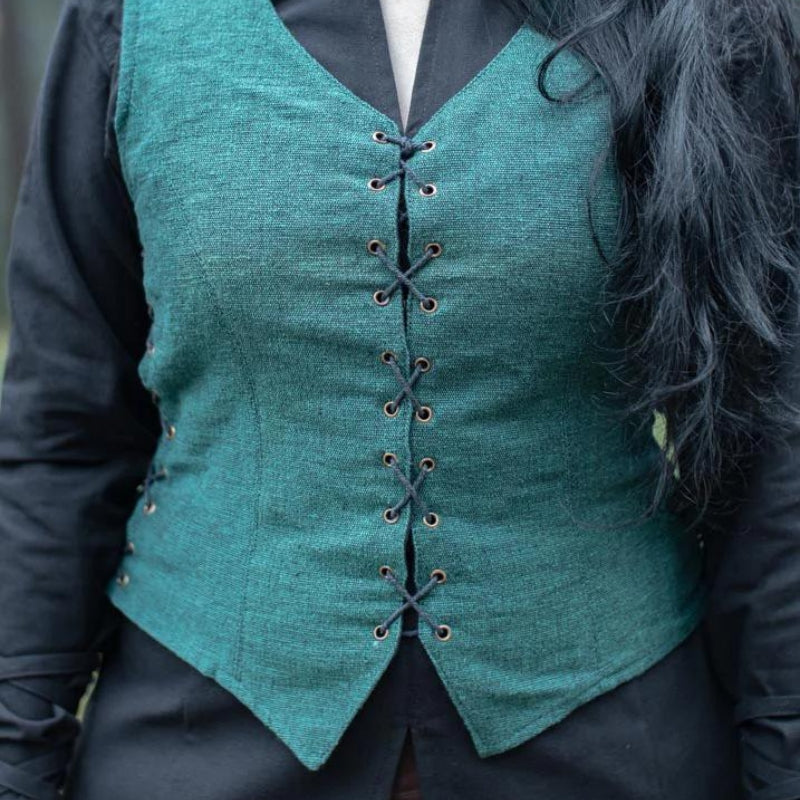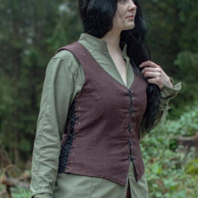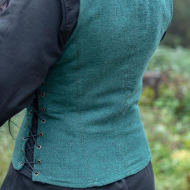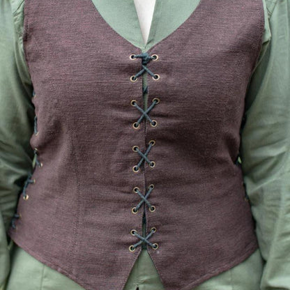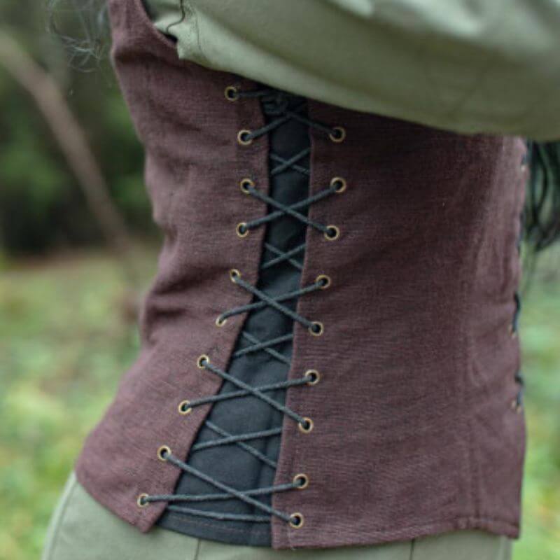 Das Marien-Mieder ist ein Muss für jede Frau, die sich in die Welt mittelalterlicher und Fantasy-Ereignisse wagt. Dieses ärmellose Oberteil aus 100 % Baumwolle vereint Funktionalität mit Eleganz und ist somit die ideale Wahl für LARP, mittelalterliche Jahrmärkte und historische Nachstellungen. Der tiefe V-Ausschnitt unterstreicht den stilvollen Reiz, während die Schnürung an den Seiten und in der Mitte für eine perfekte Passform und maximale Flexibilität sorgt.