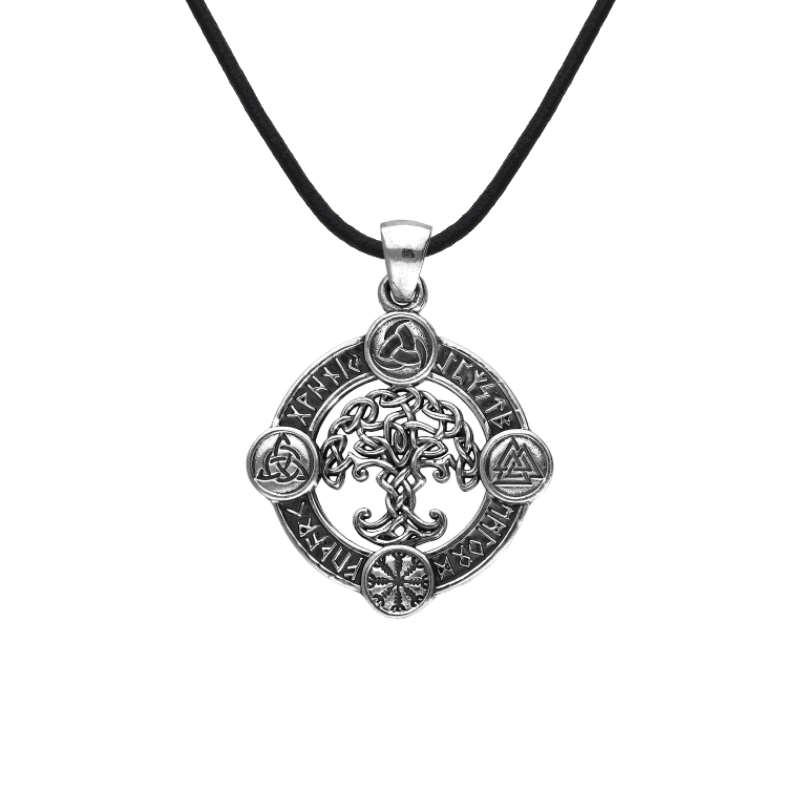 Handgefertigter Anhänger aus Sterlingsilber mit nordischen Yggdrasil-Symbolen