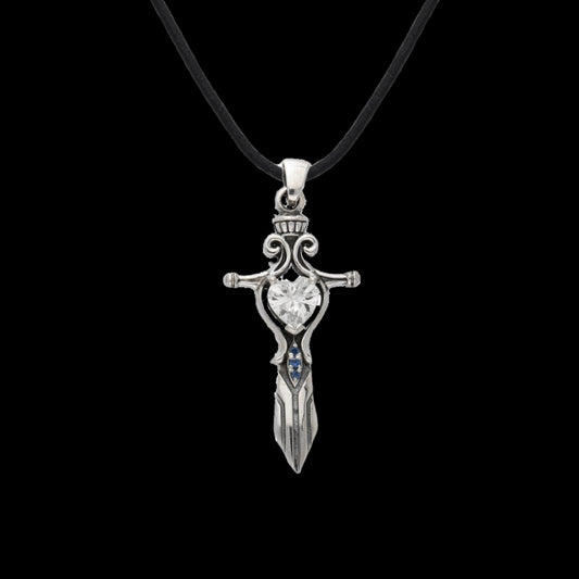 Handgefertigter Anhänger aus Sterlingsilber mit kubischem Herz und Zirkonia im nordischen Schwertstil