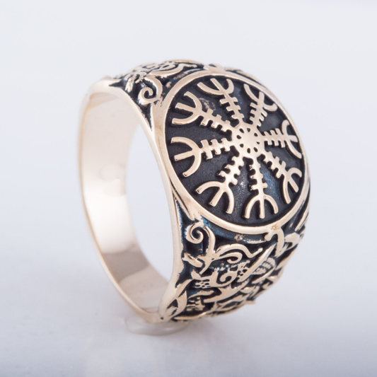 Handgefertigter Vegvisir-Ring aus vergoldetem Sterlingsilber
