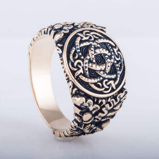 Handgefertigter Bronzering mit Drakkar-Symbol und Mammen-Ornament