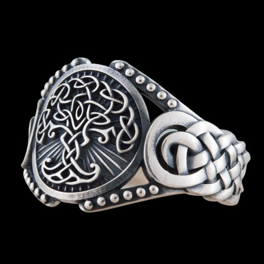 Handgefertigter Yggdrasil-Symbol-Wikinger-Ornament-Ring aus Sterlingsilber