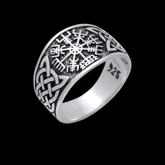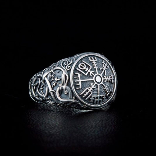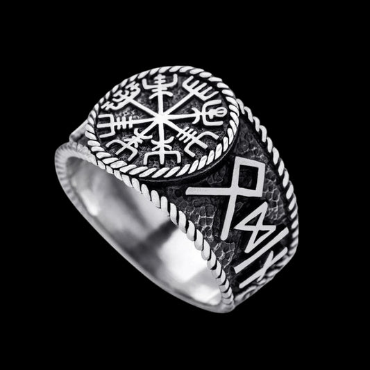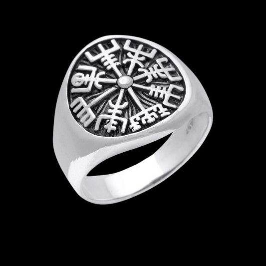 Handgefertigter Ring aus Sterlingsilber mit nordischem Vegvisir-Ornament