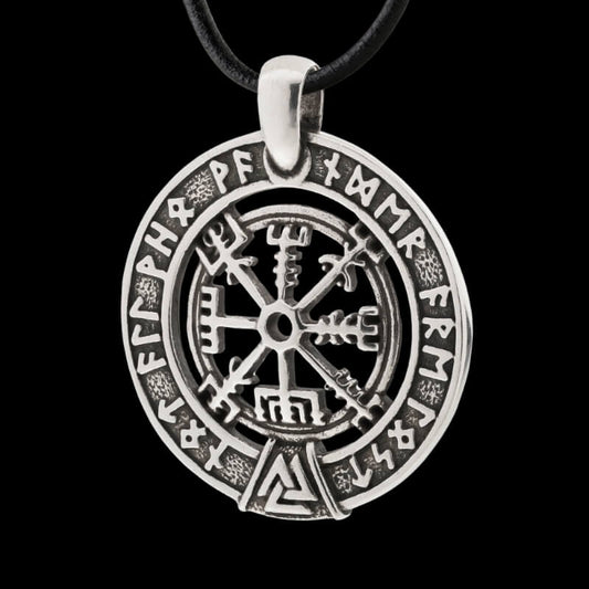 Handgefertigter Vegvisir-Symbol-Anhänger aus Sterlingsilber