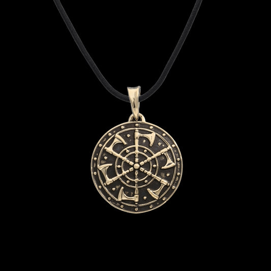 • vkngjewelry Pendant Handcrafted Viking Shield Axes and Runes Bronze Pendant