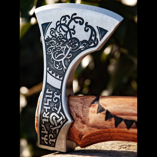 Forged Tomahawk "Skaldrun" With Tribal Engraving