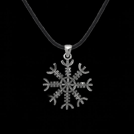 Handgefertigter silberner Aegishjalmur-Steinanhänger