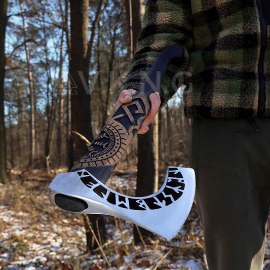 Handgeschmiedete Axt „OTHALA“ mit Lederbezug