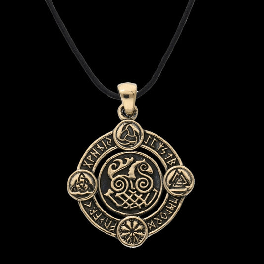 Handgefertigter Sleipnir-Bronzeanhänger mit nordischen Symbolen