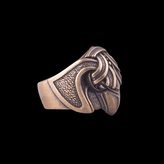 Handgefertigter Bronzering mit dem Symbol „Helm der Ehrfurcht“ aus Eichenblättern und Eicheln