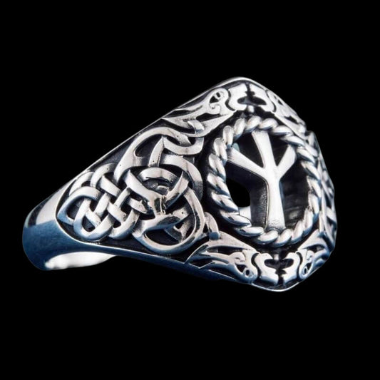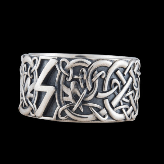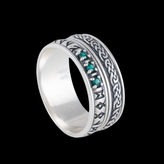Handgefertigter Runensymbol-Ornamentring mit CZ-Sterlingsilber-Wikingerschmuck