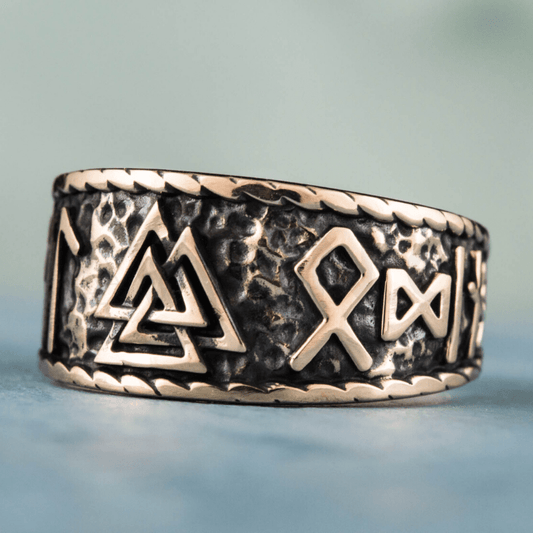 Handgefertigter Valknut-Symbol HAIL ODIN Runen-Bronzering