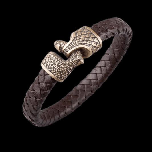 Stainless Steel Viking Jormungand With Braided Leather Bracelet