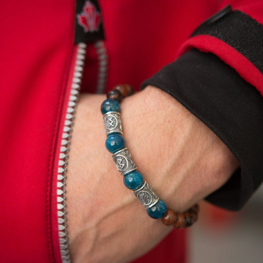 Viking Bracelet with Apatite and Red Obsidian And Runes