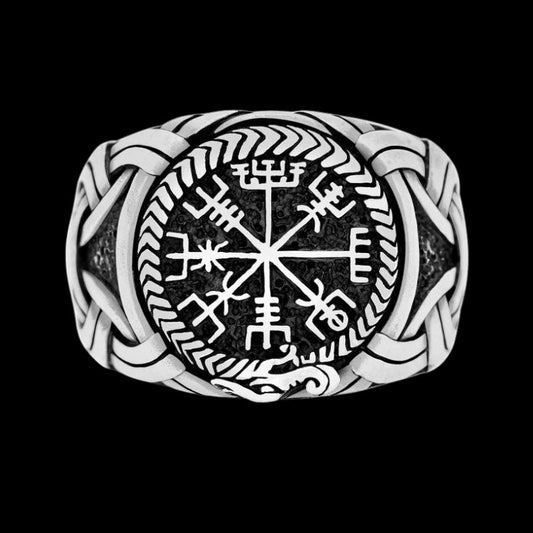 Vegvisir Norse Compass Knotwork Sterling Silver Ring