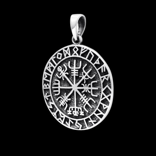 Vegvisir Futhark Circle Sterling Silver Pendant
