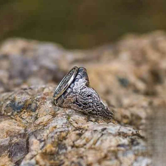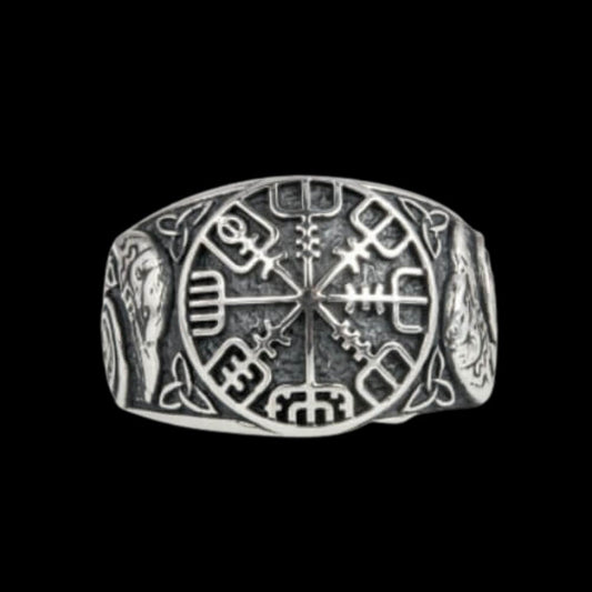 Handcrafted Vegvisir Symbol Raven Style Silver Ring