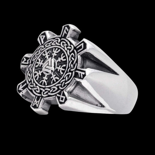 Handcrafted Valknut Urnes Style Sterling Silver Ring