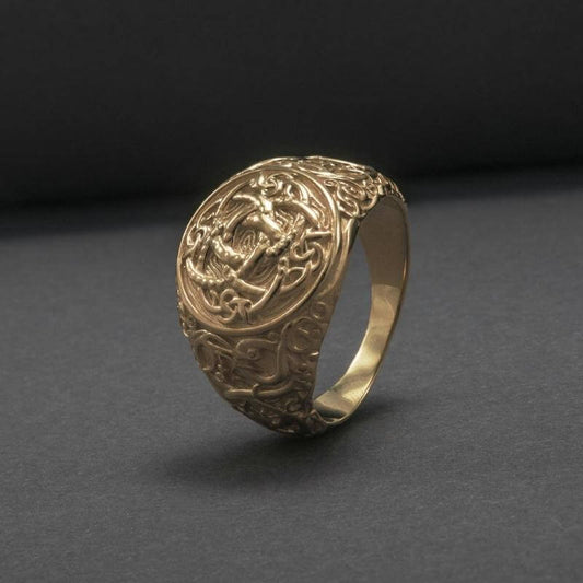 Handcrafted Sleipnir Urnes Ornament Gold Ring