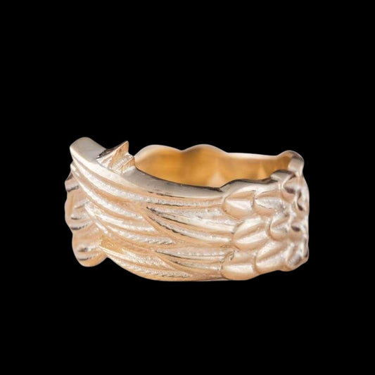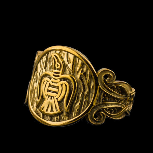 Handcrafted Odin Raven Symbol Urnes Style Gold Ring