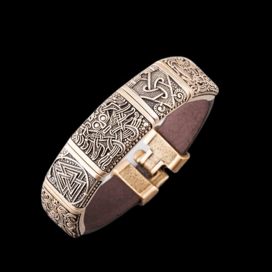 Handcrafted Valknut and Elder Futhark Runes Arm Ring
