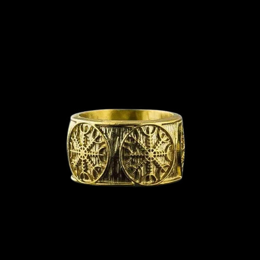 Handcrafted Elder Futhark Runes with Wide Rim Gold Ring