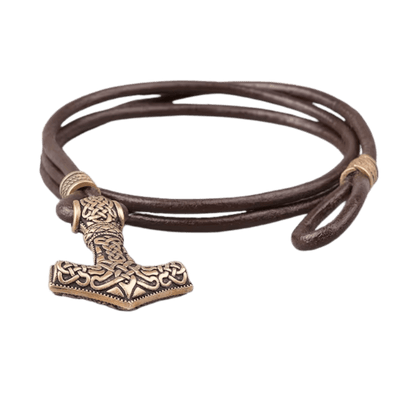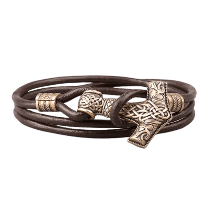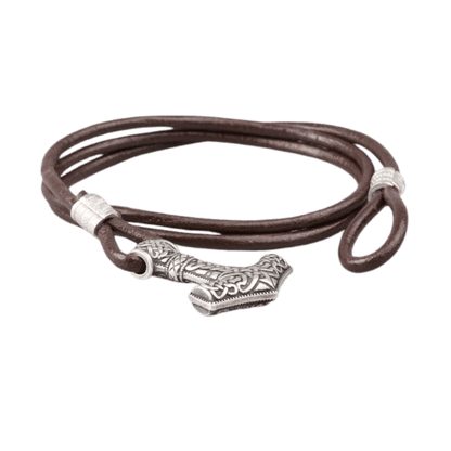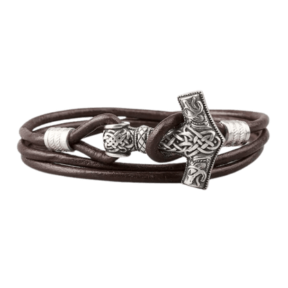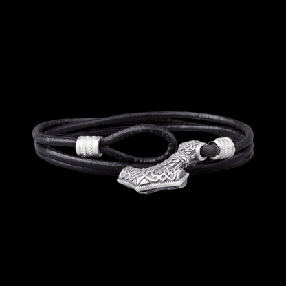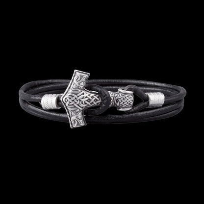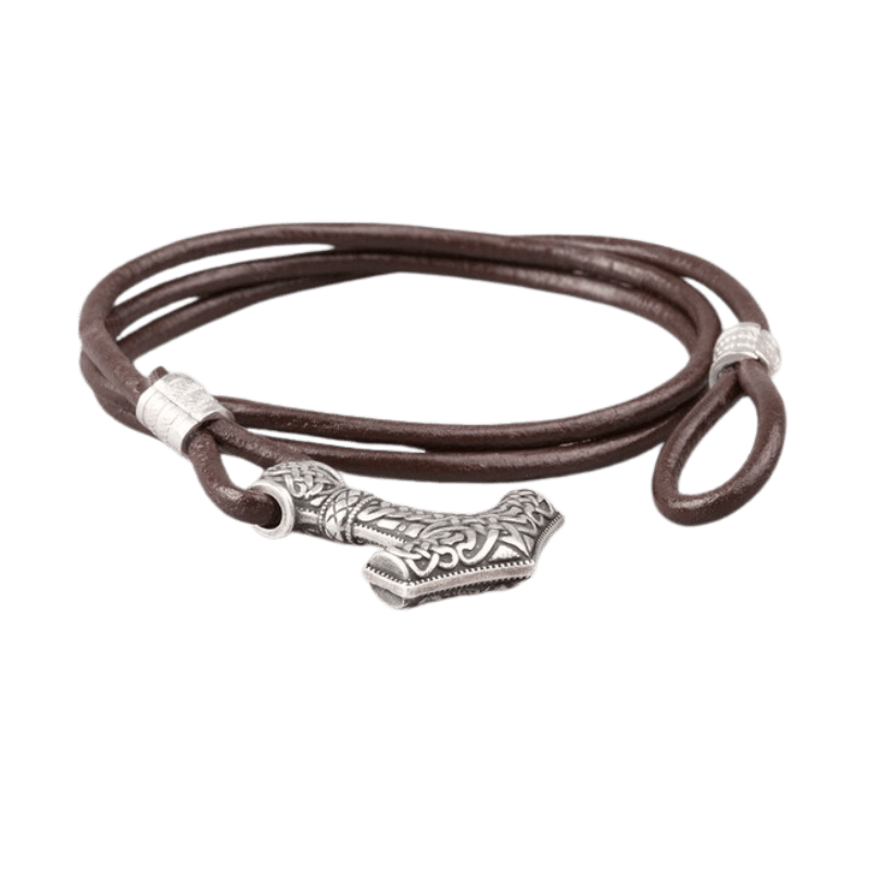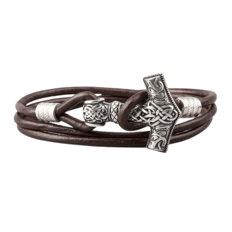 Embrace the might of Thor with the Alrun Bracelet, featuring a detailed Mjölnir charm.