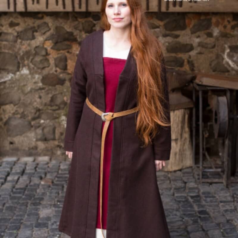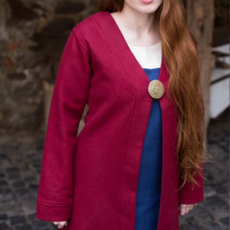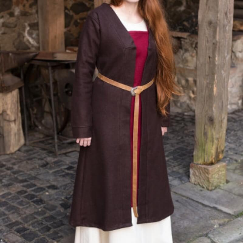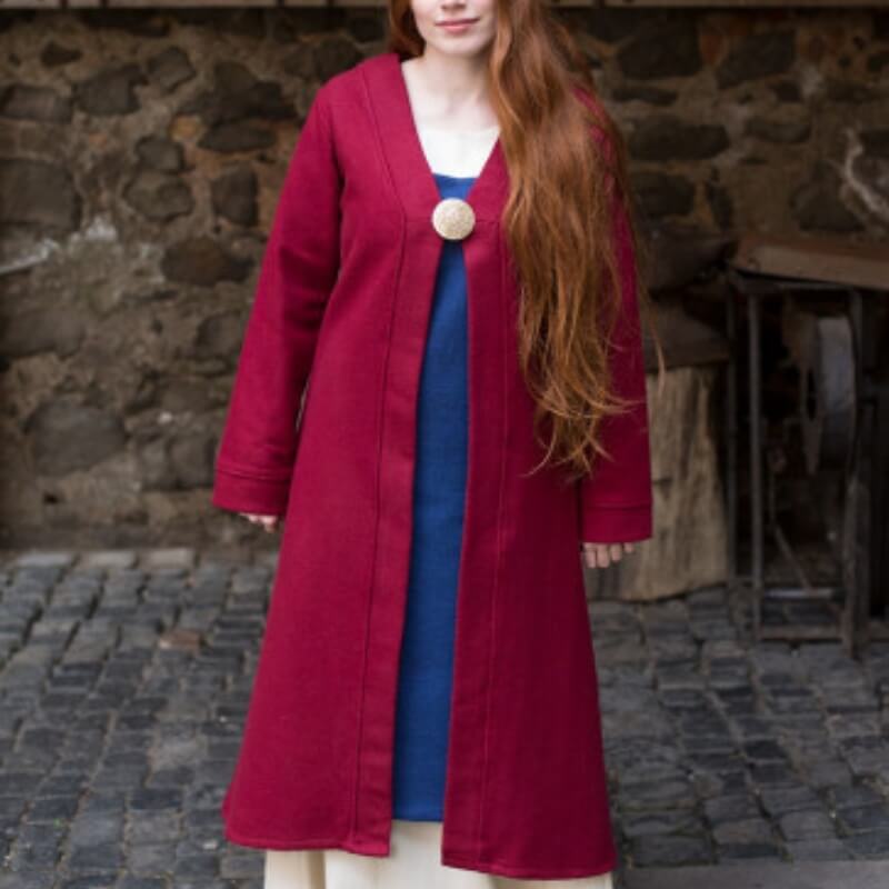 The coat's mid-calf length and timeless silhouette make it a versatile choice for reenactments or daily wear. It can be left open, belted, or fastened with a brooch at the chest for a historically accurate touch. Whether you're portraying a noblewoman or simply braving the chill of a Nordic evening, this coat offers both style and functionality.