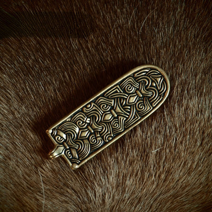 The Handcrafted Borre Styled Brooch revives the craftsmanship and intricate aesthetics of the 9th century through its historically accurate, tongue-shaped design. A meticulous replica of artifacts housed in the British Museum, this piece channels the artistry of the Viking Age.