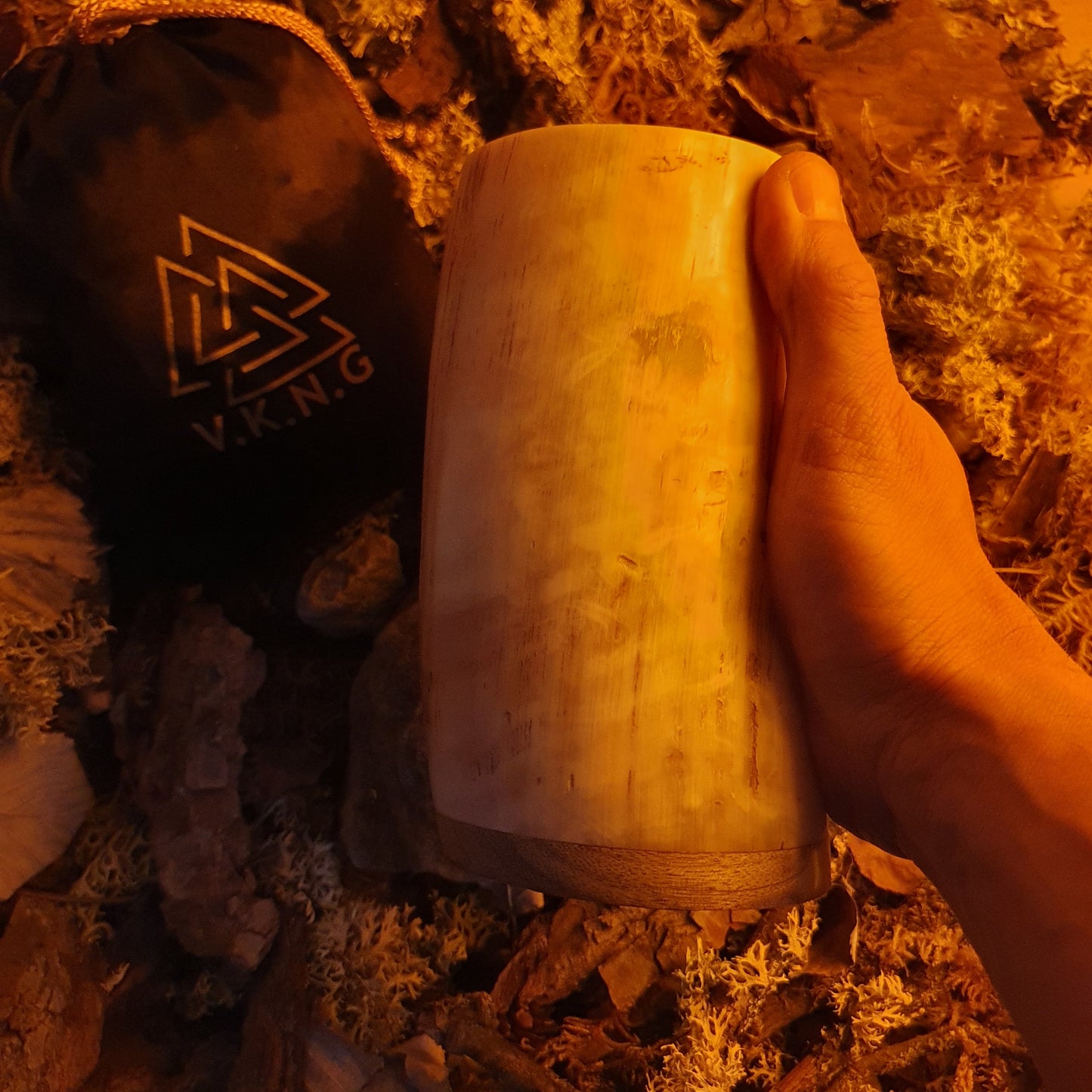 Each tankard is individually shaped from genuine horn, ensuring that no two pieces are exactly alike. This uniqueness adds a personal touch to each drinking session, imbuing it with a sense of history and authenticity. The tankard's long handle is not just practical, providing a comfortable grip, but also contributes to its aesthetic allure.