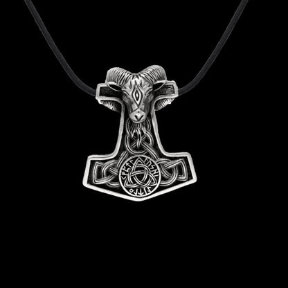 Mjolnir Goat Amulet With Triquetra Knot Sterling Silver Pendant