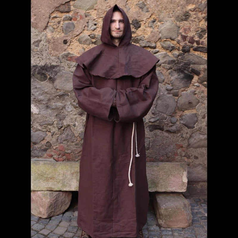 The Monk's Habit Franziskus is a faithful reproduction of the attire worn by the mendicant friars of the 13th century, followers of Francis of Assisi. These "lesser brothers" renounced worldly possessions and embraced a life of simplicity, chastity, and devotion to their faith. Originally, their founder did not intend to create a religious order but rather inspire others to live a godly life.