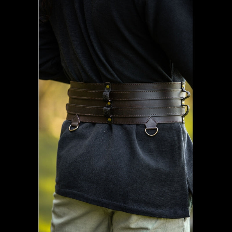 The Handcrafted Viking Belt with Stamped Brass Ornaments is a tribute to the artistry of the Viking Age.