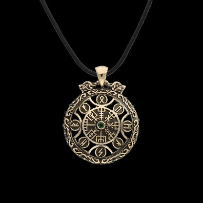 Handcrafted Vegvisir Symbol Viking Runes Ornament Bronze Pendant