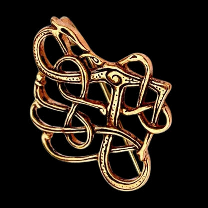 This brooch is a stunning replica of a historic find from Trollaskogur, Iceland, dating back to the 11th century. Created in the intricate Urnes style, it captures the artistry of the late Viking Age, renowned for its dynamic animal motifs.