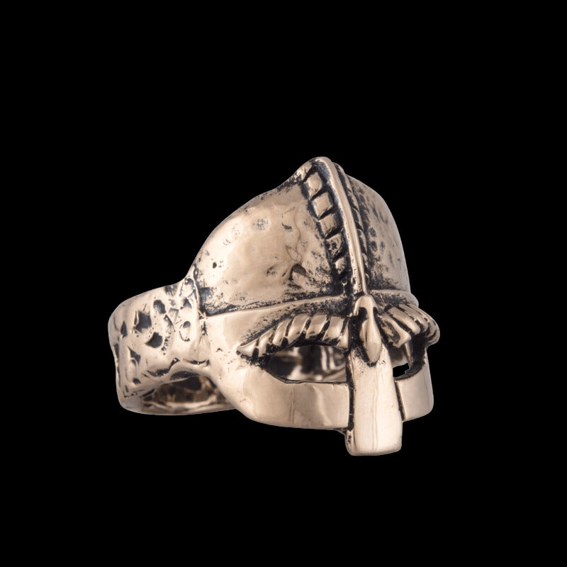 The Viking Helmet Bronze Ring draws its inspiration from the Yarm Helmet, an archaeological find that offers a window into the Viking Age. Unlike the myth of horned helmets, this piece represents the true essence of Viking warfare gear designed for functionality and protection. The intricate embellishments around the eyes are not merely decorative; they symbolize the Vikings' keen awareness, always vigilant for both opportunity and threat.