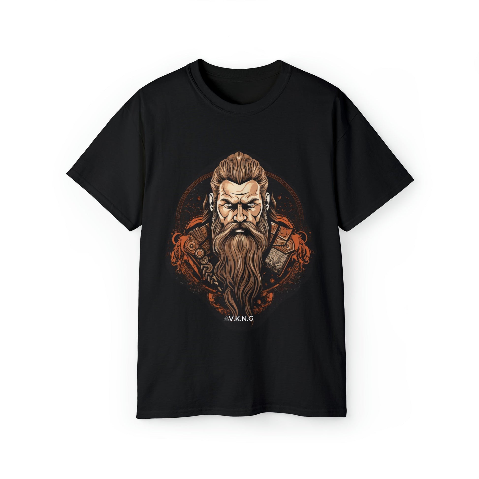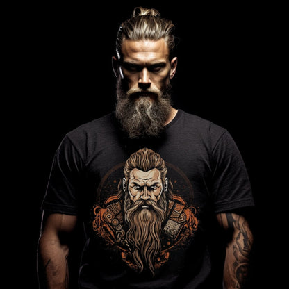 Featuring a design that evokes the Viking era, this T-shirt is more than just apparel; it's a narrative of battles, sagas, and mythologies. It embodies the spirit of Viking heroes, echoing their epic quests and unyielding resolve. The intricate design elements resonate with the rich history and the powerful tales that surround these ancient warriors.