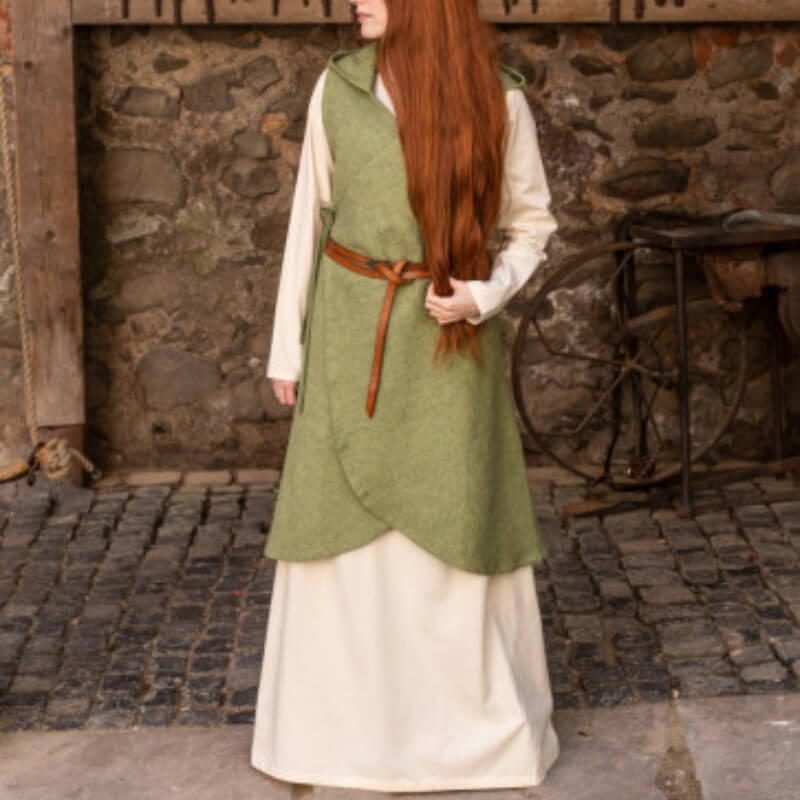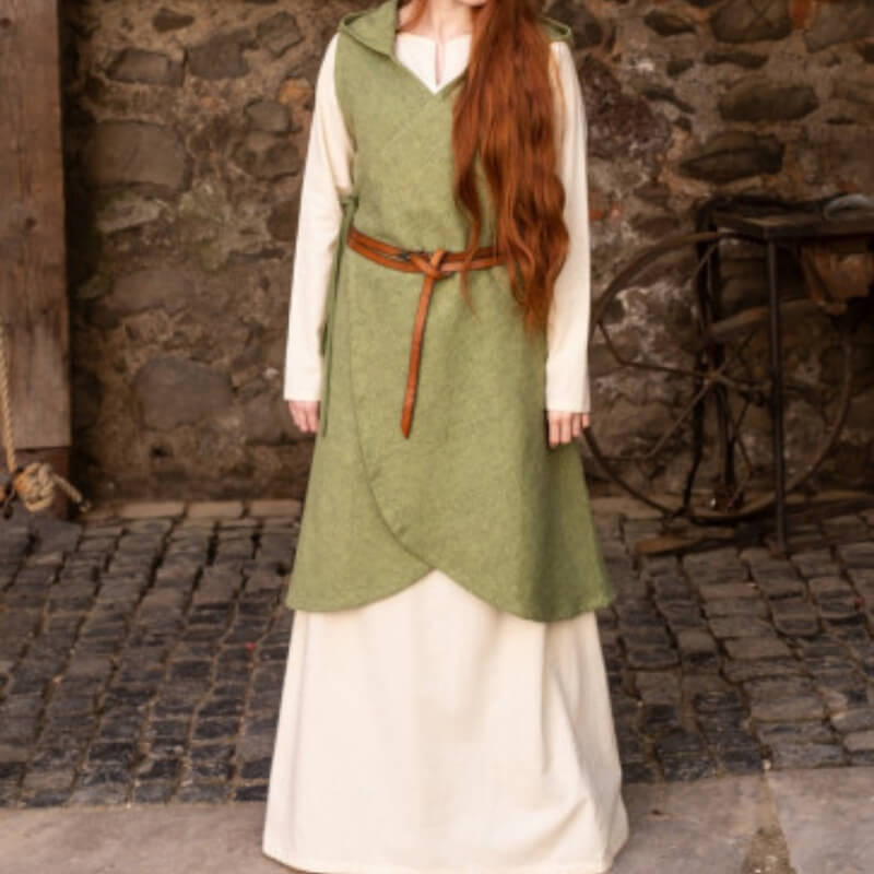 The thoughtful design features asymmetrical front and back panels, creating a dynamic yet delicate movement that mirrors the natural harmony of Yggdrasil, the great tree of life. Whether you're portraying an elf of ethereal beauty, a focused archer, or a resolute warrior, the Wrap Dress Runa enhances your character with its authentic and timeless aesthetic.