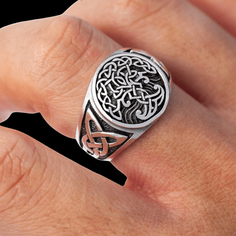 Step into the intricate web of Viking cosmology with the Sterling Silver Yggdrasil Signet Ring.