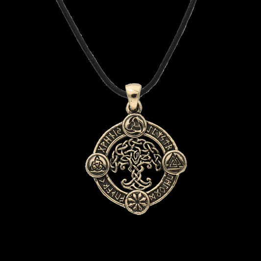 Handcarved Unique Walnut Wood Yggdrasil Triquetra Pendant