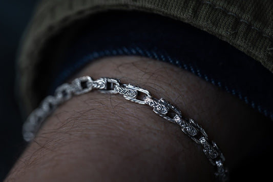 Viking Rune Link Bracelet Handcrafted Sterling Silver Amulet
