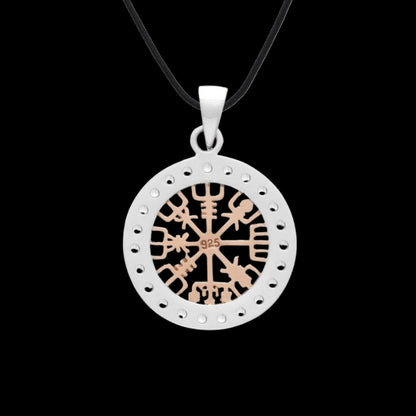 Colgante Vegvisir de Plata de Ley 925 con Oro Rosa