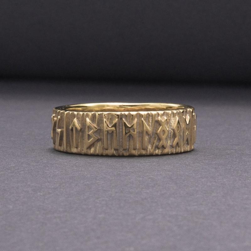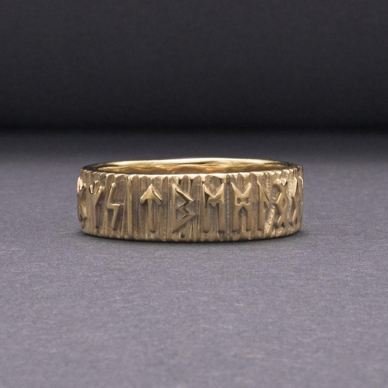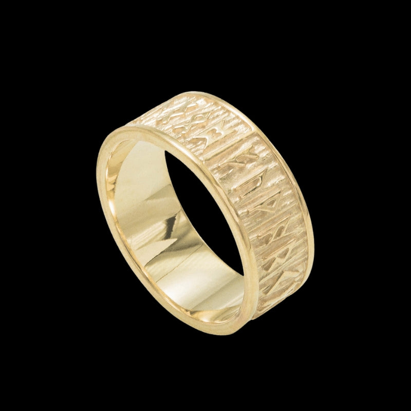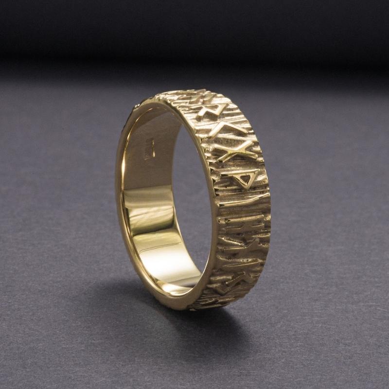 Anillo de oro hecho a mano con runas Elder Futhark